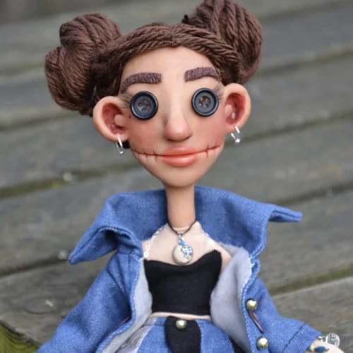 “Being a huge fan of Coraline, I wanted a doll that felt authentic yet personal. The soft, poseable body combined with the detailed polymer clay head was perfect. The waiting time was worth it — the doll arrived in impeccable condition, with beautiful hand-painted features and a cozy outfit that matched my specifications exactly.”
